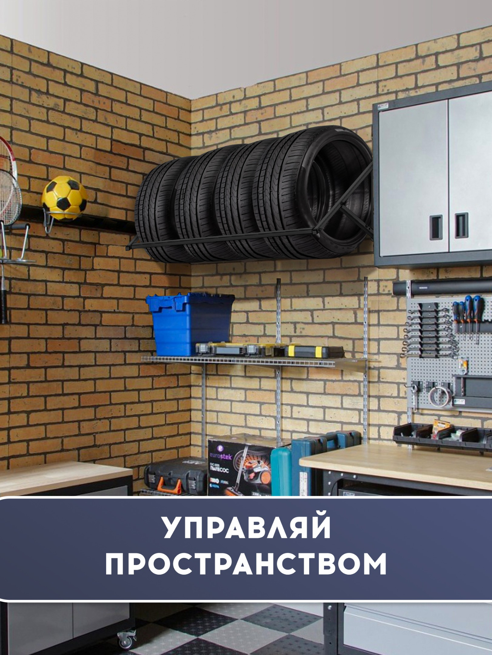 Одним из основных назначений кронштейна является экономия места в гараже или другом помещении, позволяя разместить шины вертикально на стене.