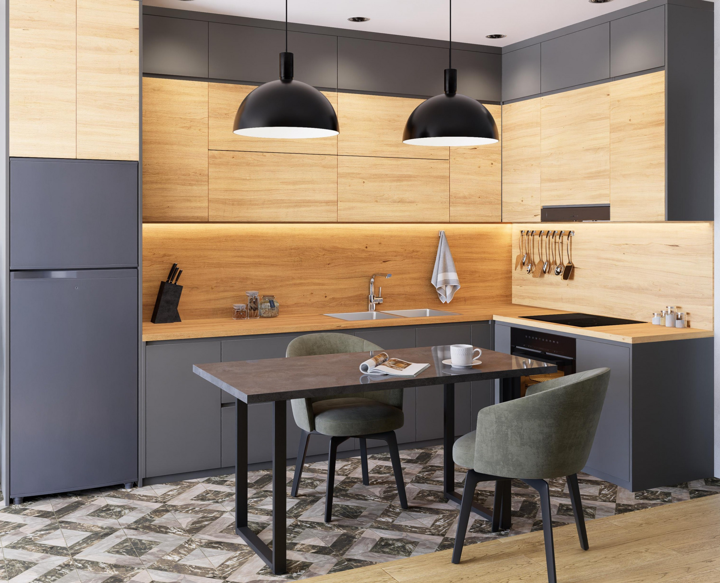 Оптимальная ширина столешницы 600мм, тогда по краям остается свес 22,5мм.